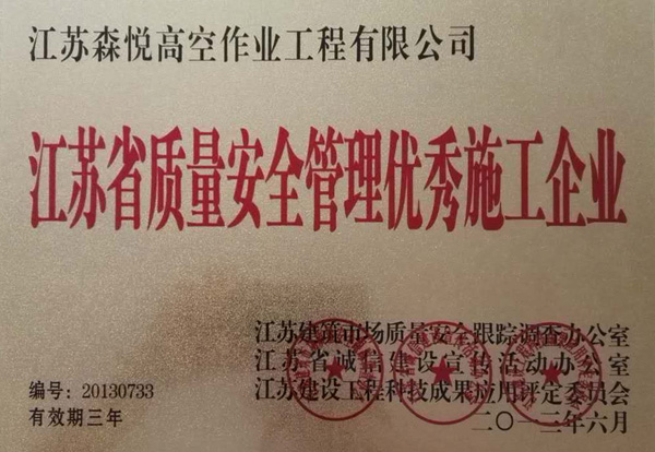 江蘇省質量安全管理優秀施工企業 |